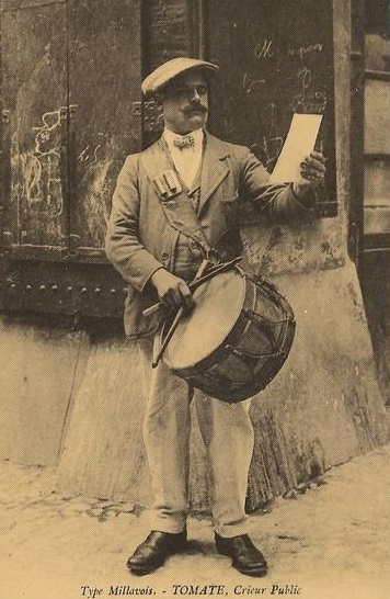 Le tambour de ville était autrefois une sorte de crieur public qui informait la population d’un grand nombre de communes en avertissant les citoyens de sa présence par le son du tambour . Les habitants sortaient alors de leur domicile et se rassemblaient pour l’écouter.